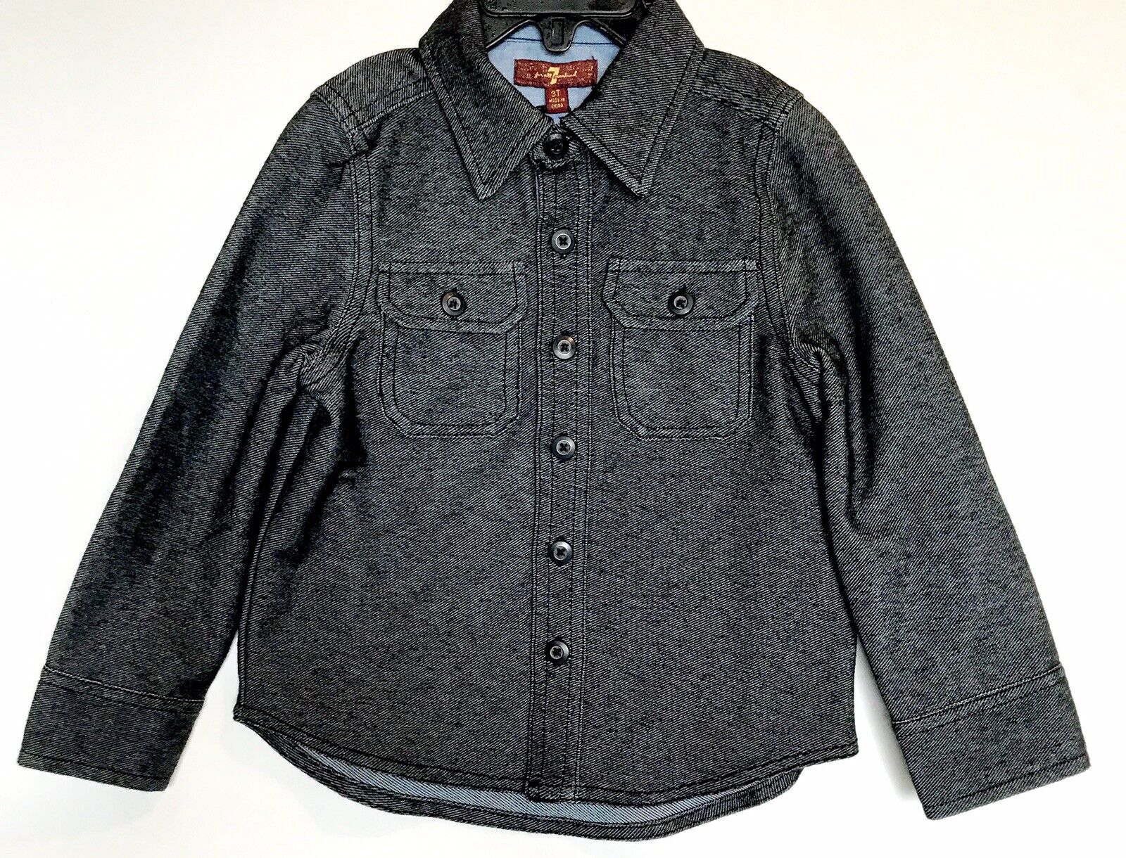 7 For All Mankind Boys Button Up Black Shirt 3T NWT Retail $50 Price $22