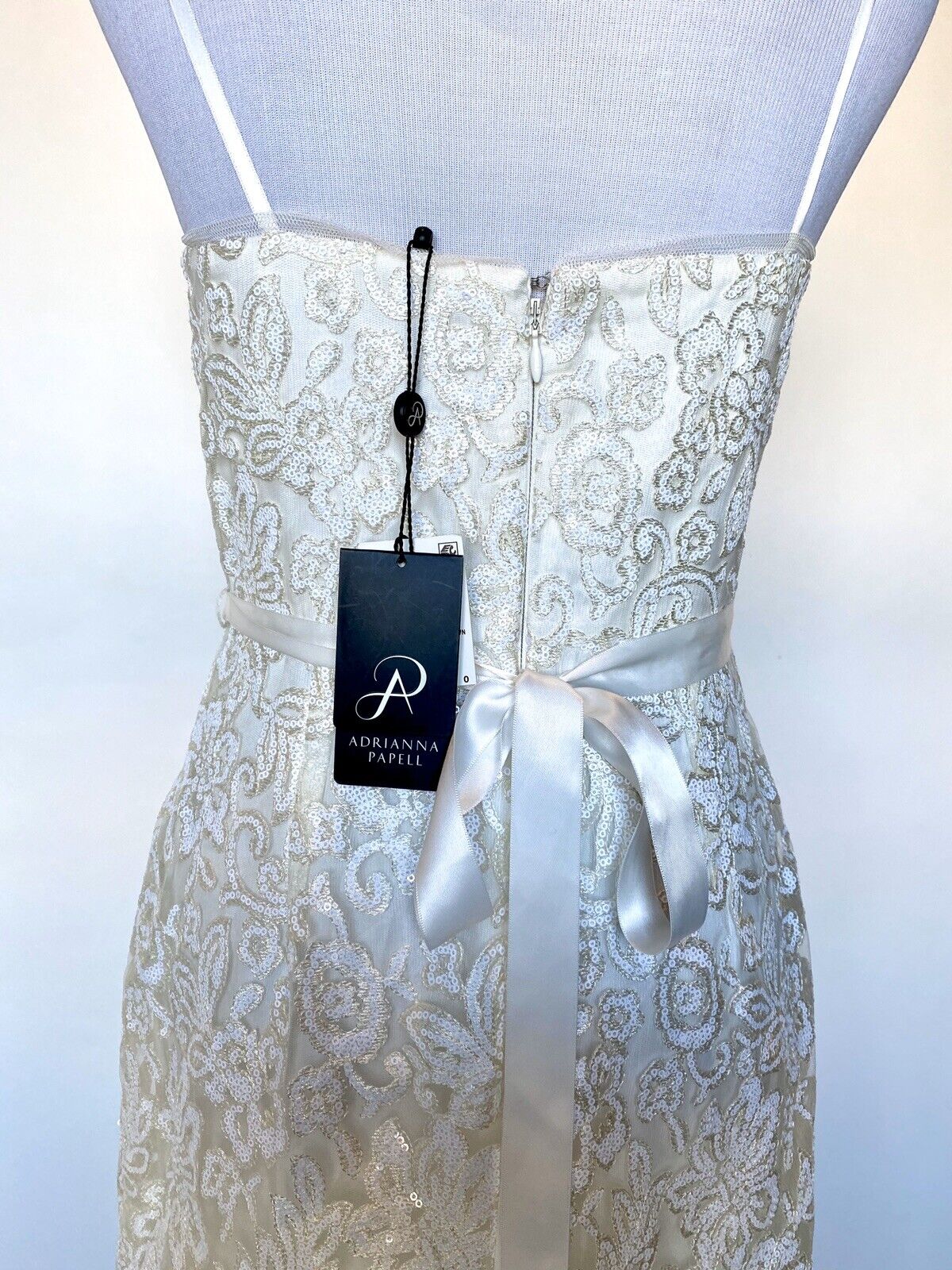 Adrianna Papell Ivory Sequin Wedding Dress NWT Size 2 Retails $399 Price $189