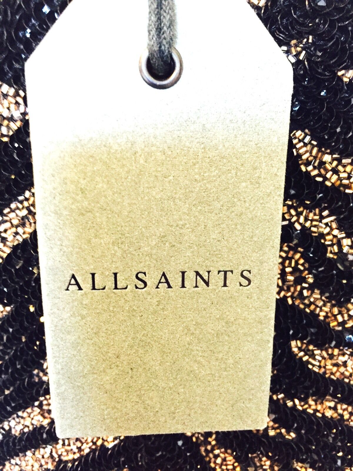 AllSaints beaded dress. Loose fitting Tee/ 20's vintage style.This dress is stunning and all hand embellished in black, bronze and gold beads and sequins.