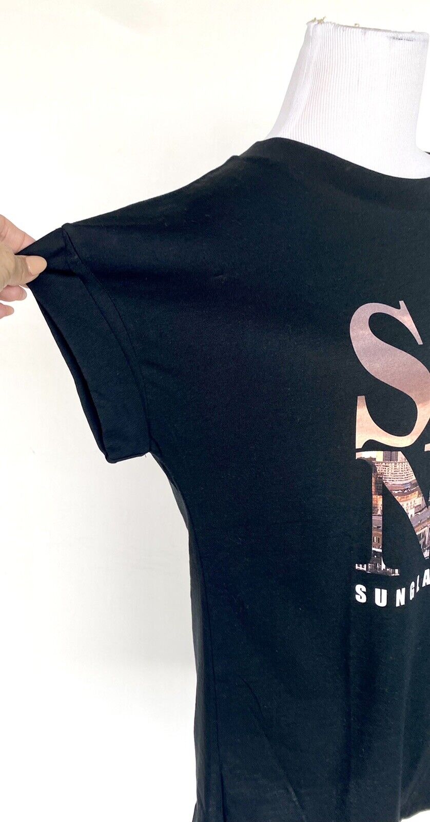 AllSaints City Imogen Boy Tee NWT Price $50 Size XS/S Roll Sleeve Black