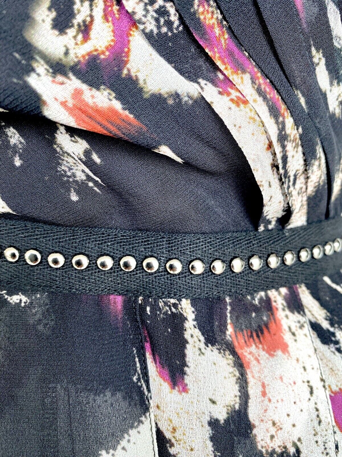 Interesting detail on the waistband which is a metal studded band all the way around.
