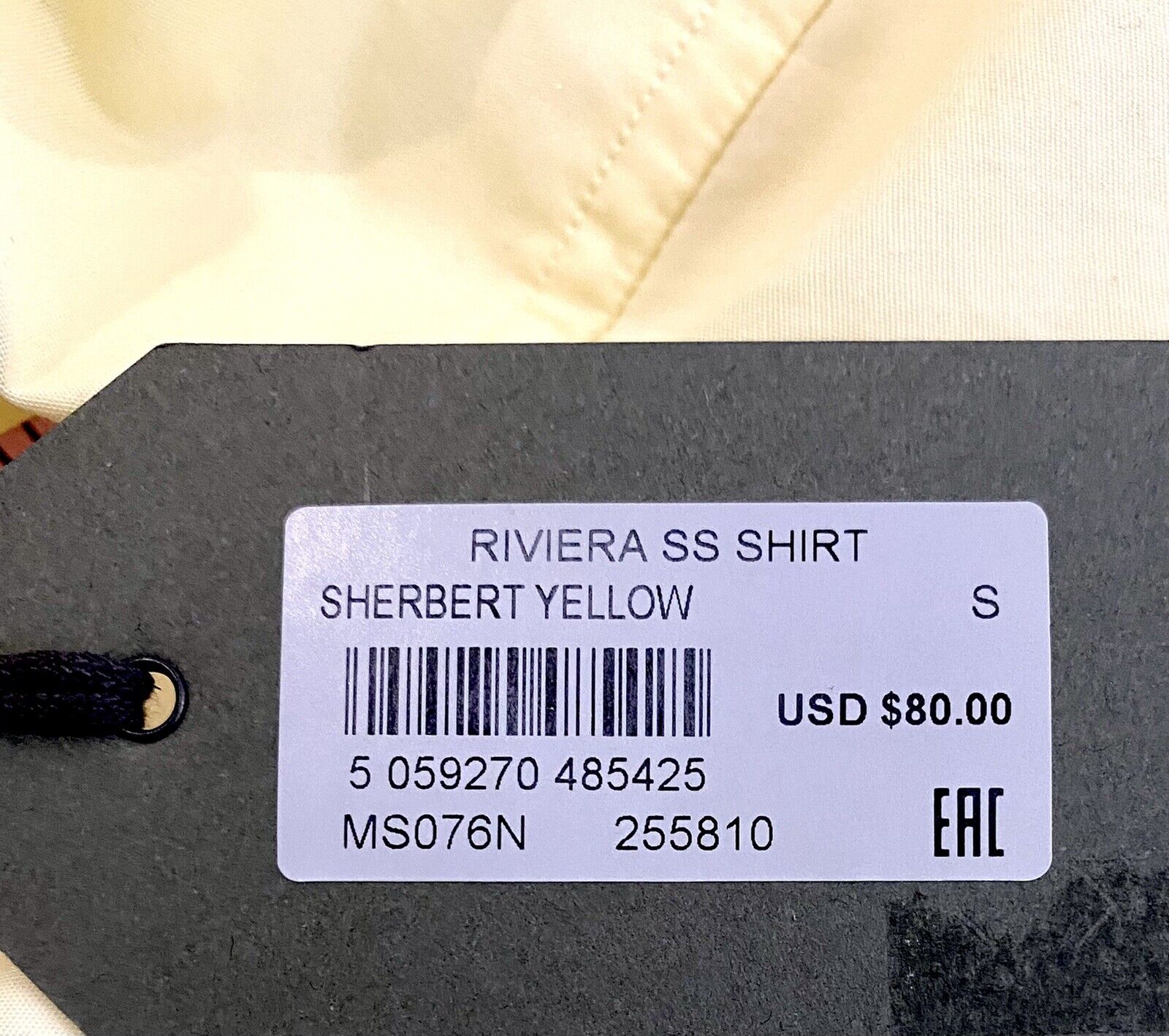 Color on tag reads dark sherbet yellow