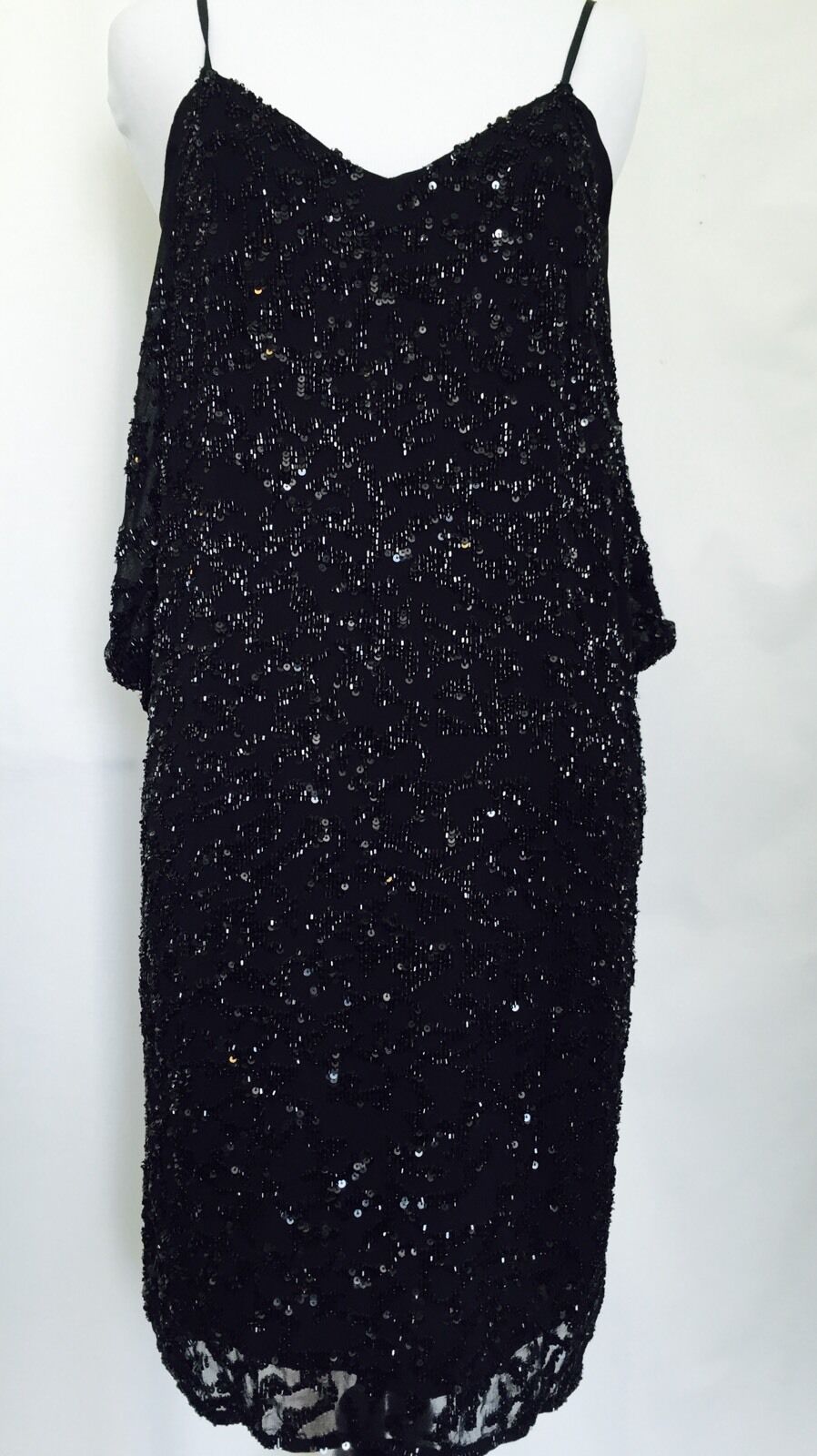 Stunning AllSaints women's evening / Formal gown. All hand embellished with black sequins over a 100% silk shell.