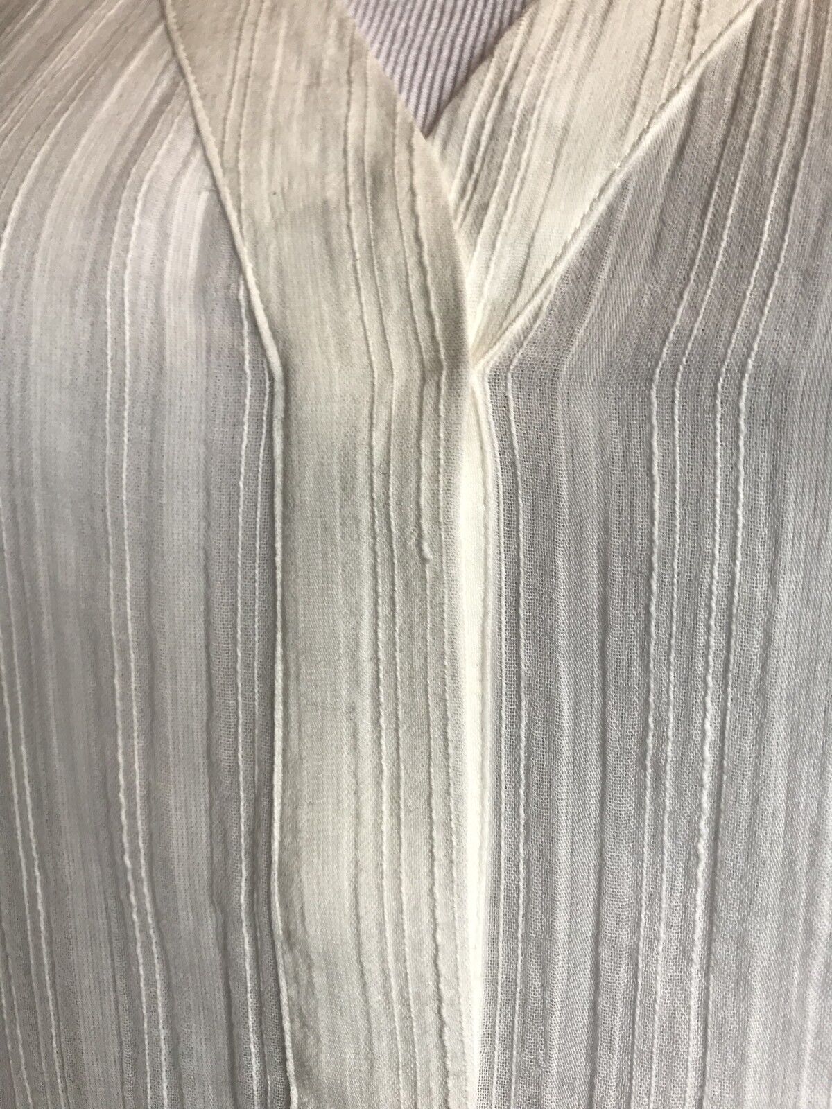 This top has a fine lined weave to the fabric. Very fine. Semi transparent.