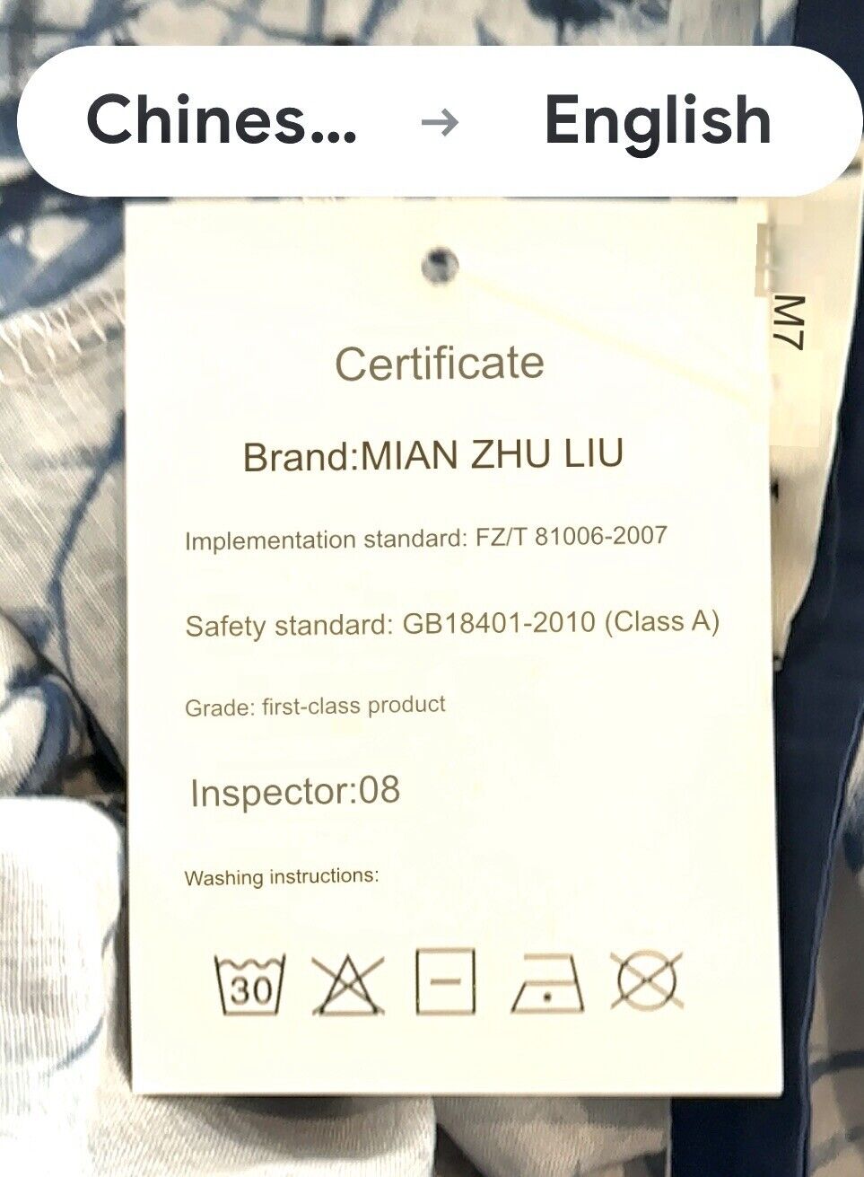 We have included pictures of the wash tags in English translation and original language