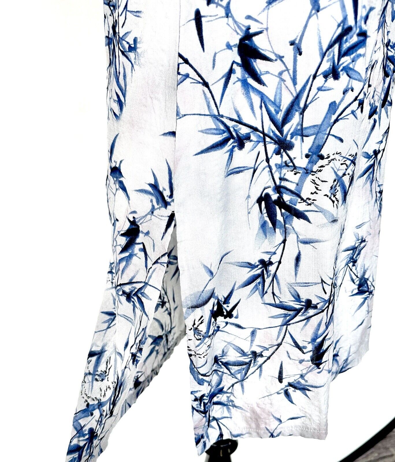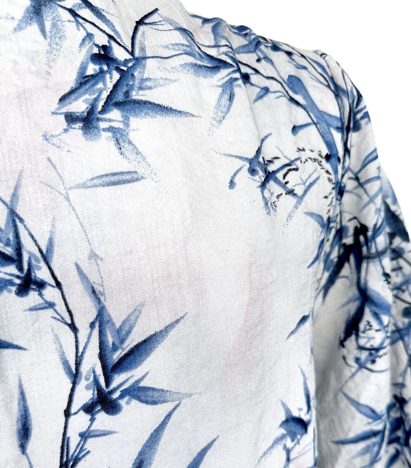It features a beautiful bamboo plant pattern in gray, blue, and a