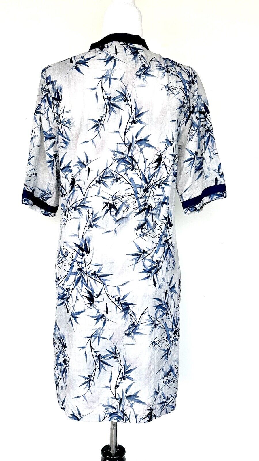 Asian Kimon Tunic Style Cover Up Size S/M Gray Blue Pink Bamboo Print