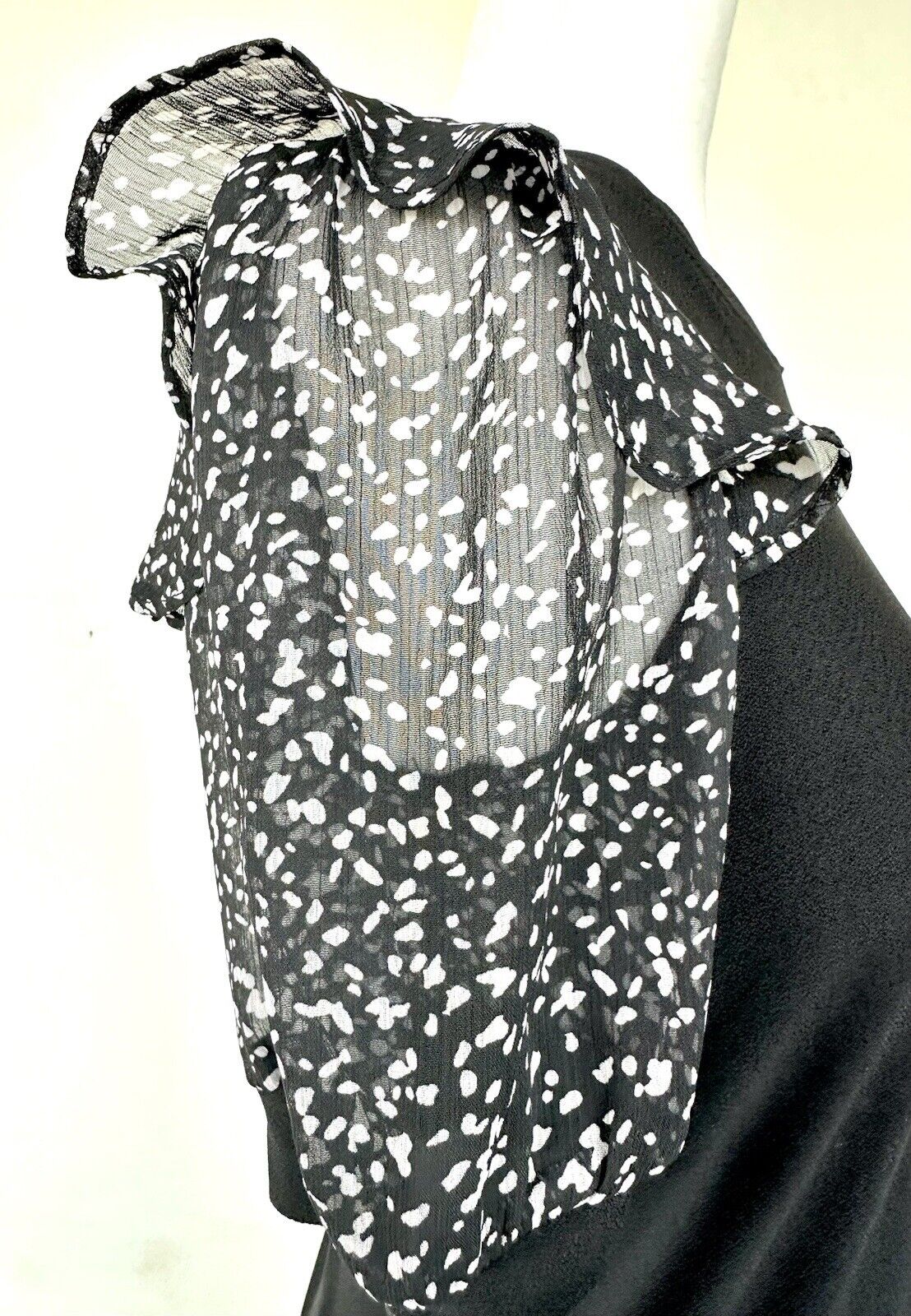 CeCe Puff-Sleeve Top. Black w/polka dot SS NWT Chiffon Sleeve Retail $69 XS