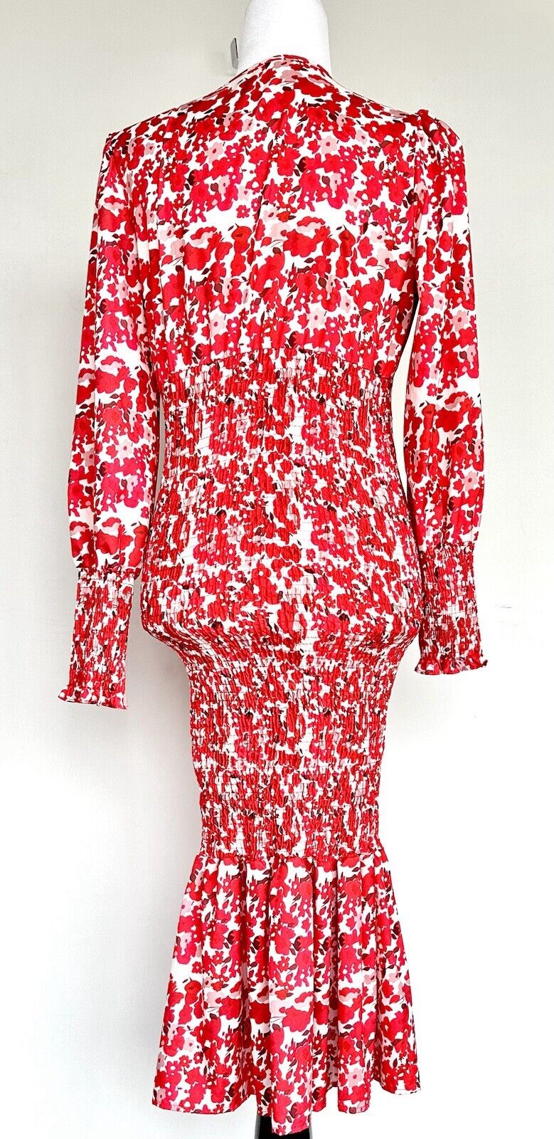 Dolce Smocked Red LS Floral Dress Size Small Bodycon
