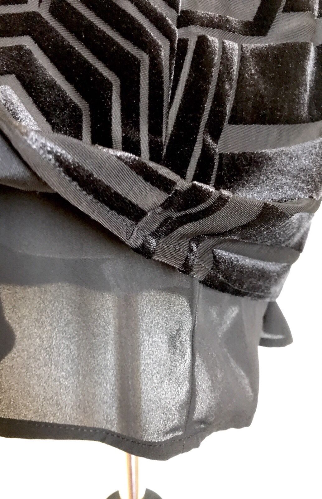 This is an attractive top with Cutout Velvet design over the top of two layers of Chiffon type fabric that hangs beautifully.