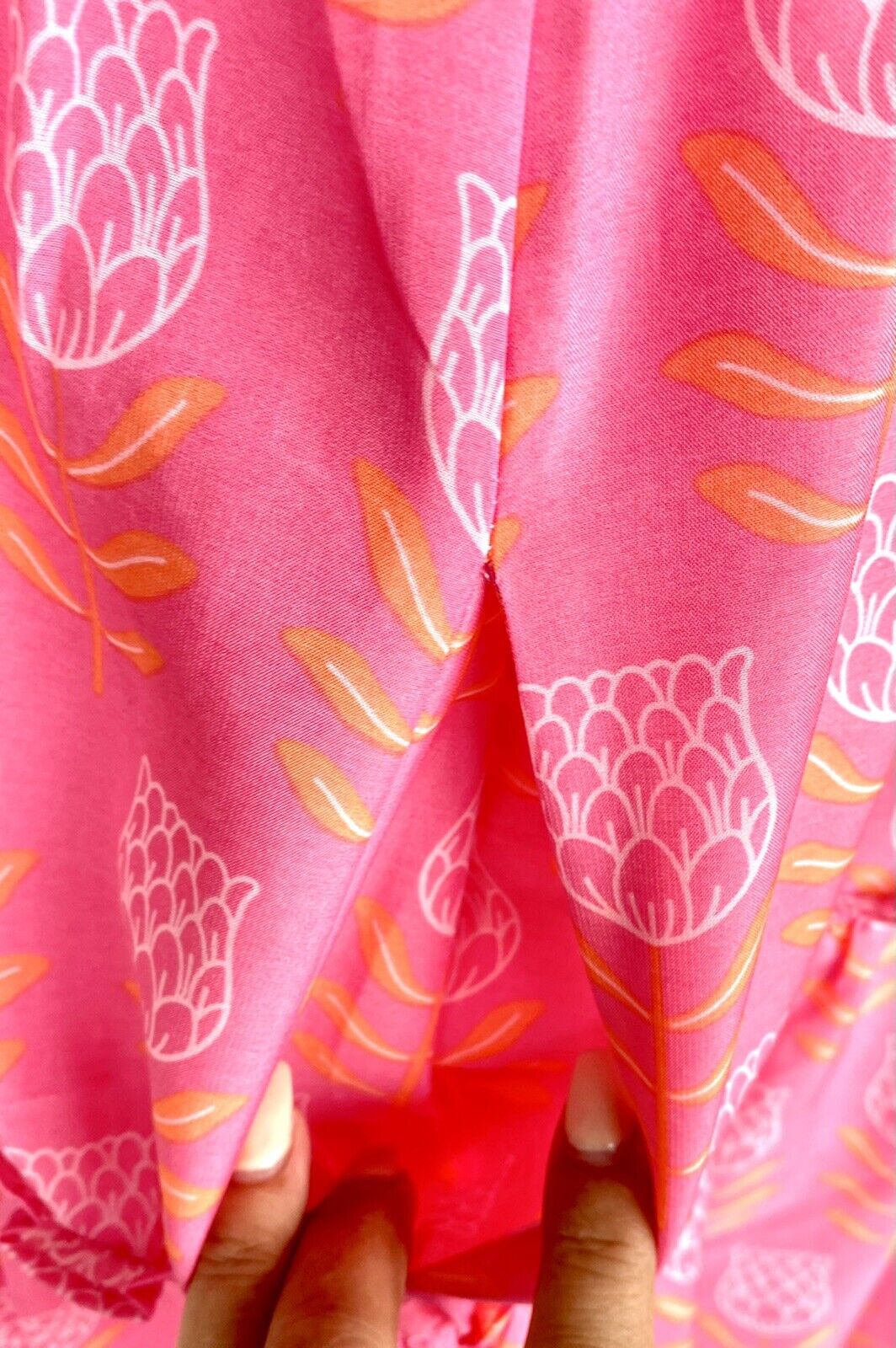 Floral design with pink white and Orange and a pink lining.