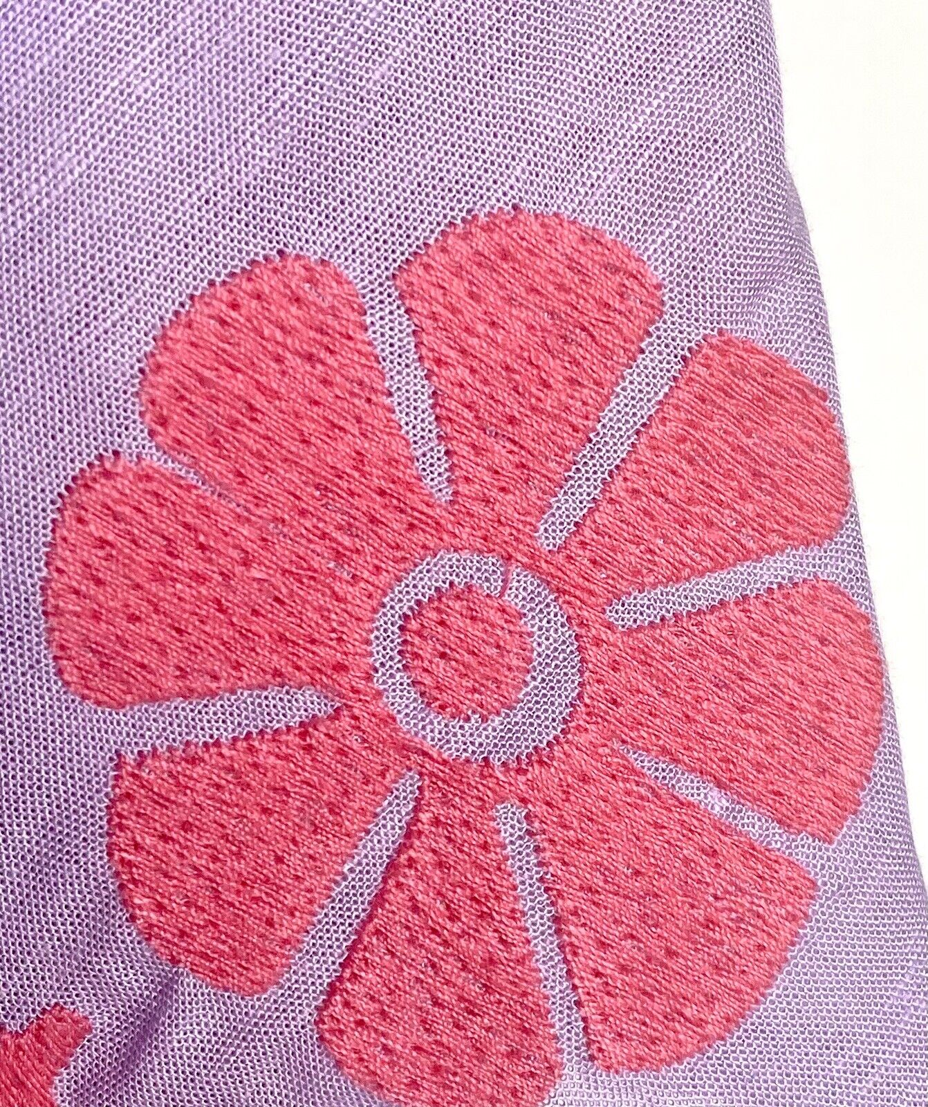 Lilac base with beautifully embroidered Pink flower and leaf design.