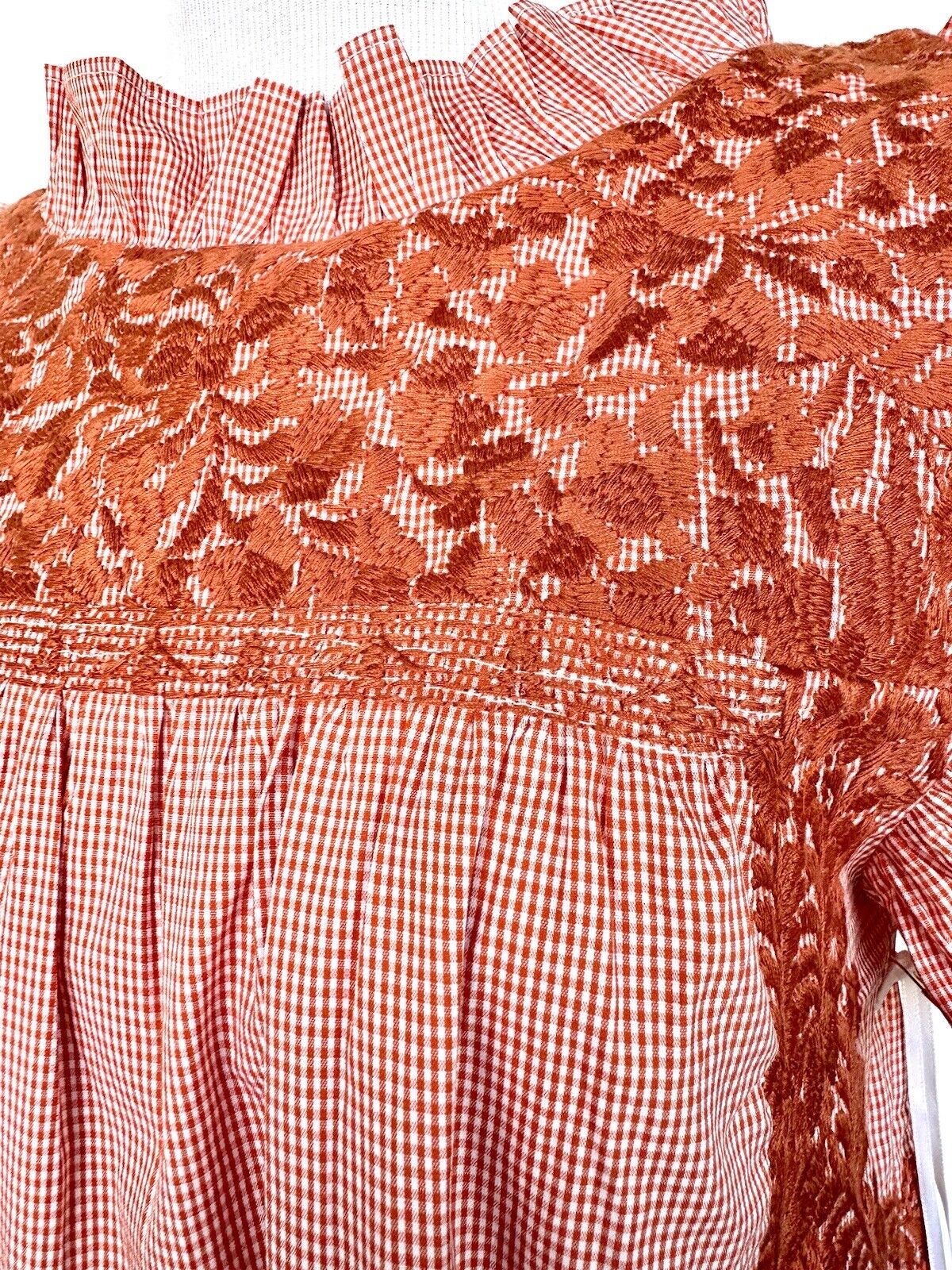 Burnt orange with beautiful embroidered floral design.