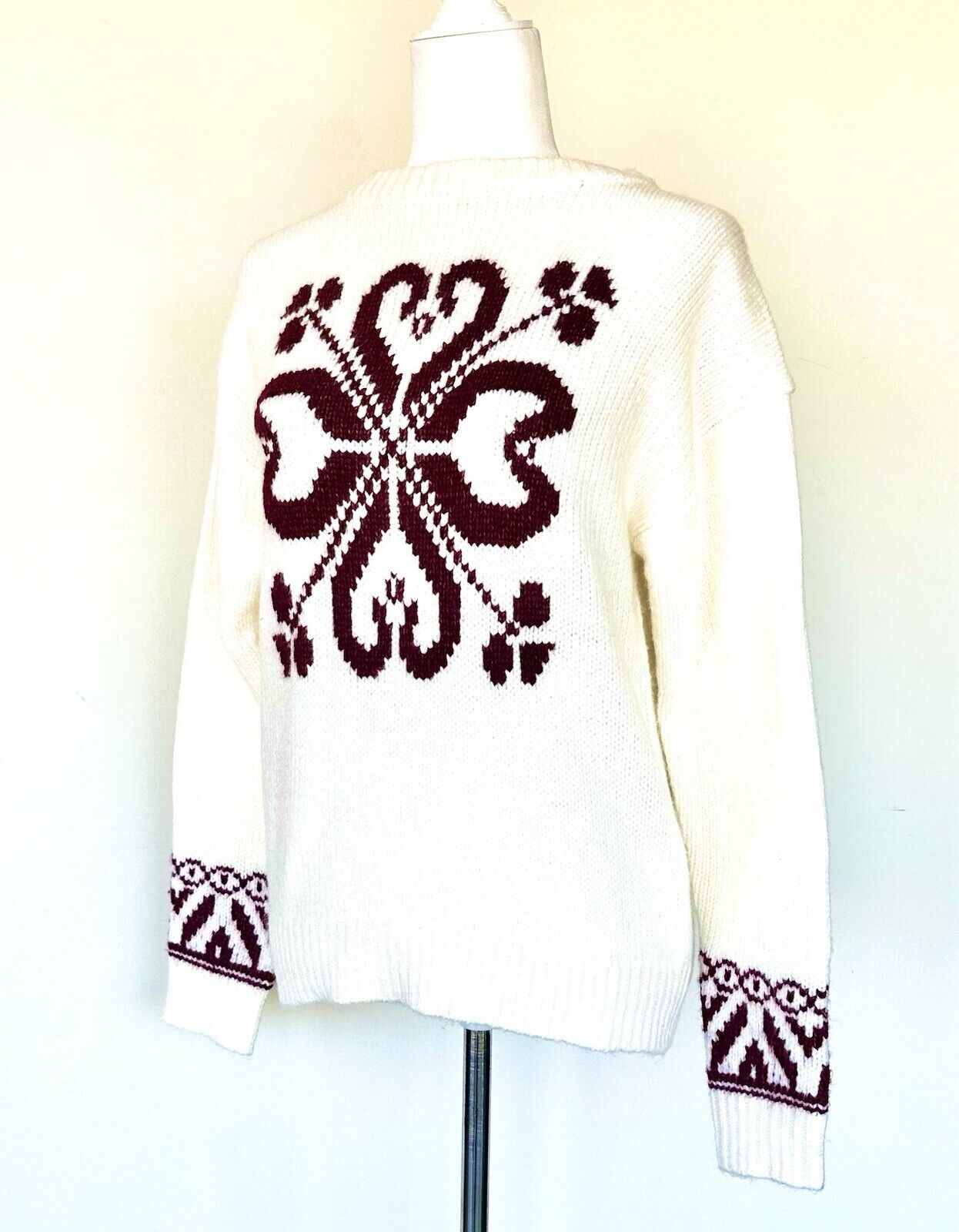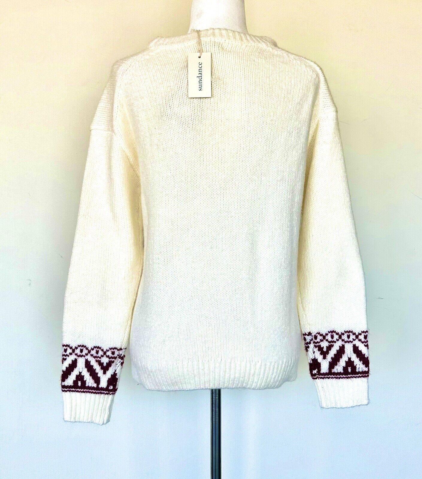 NWT SUNDANCE SNOW HAVEN SWEATER BURGUNDY IVORY Retails $118 Size XS