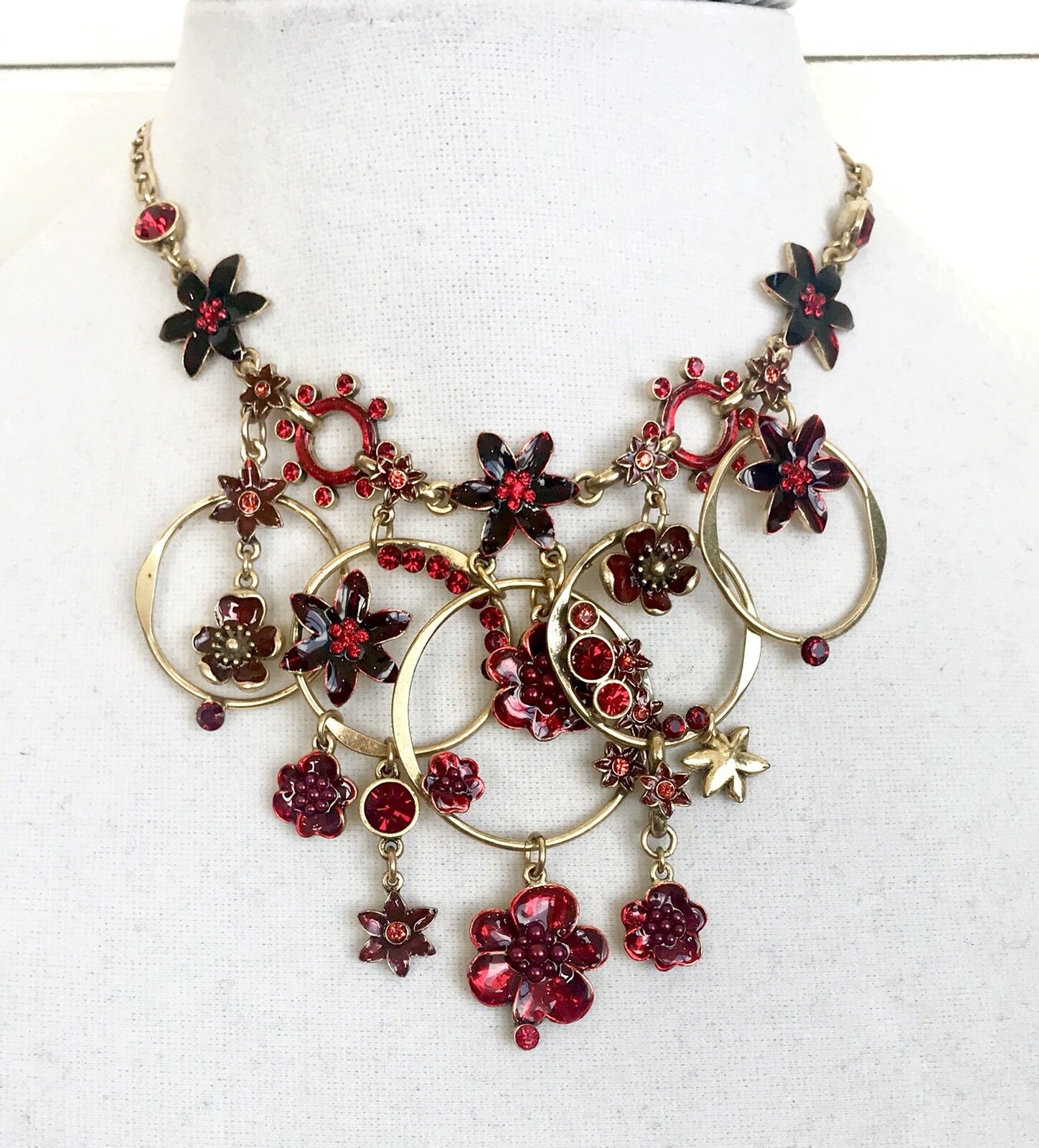Beautiful 5 hoop design with enameled Flowers with Swarovski crystal centers.