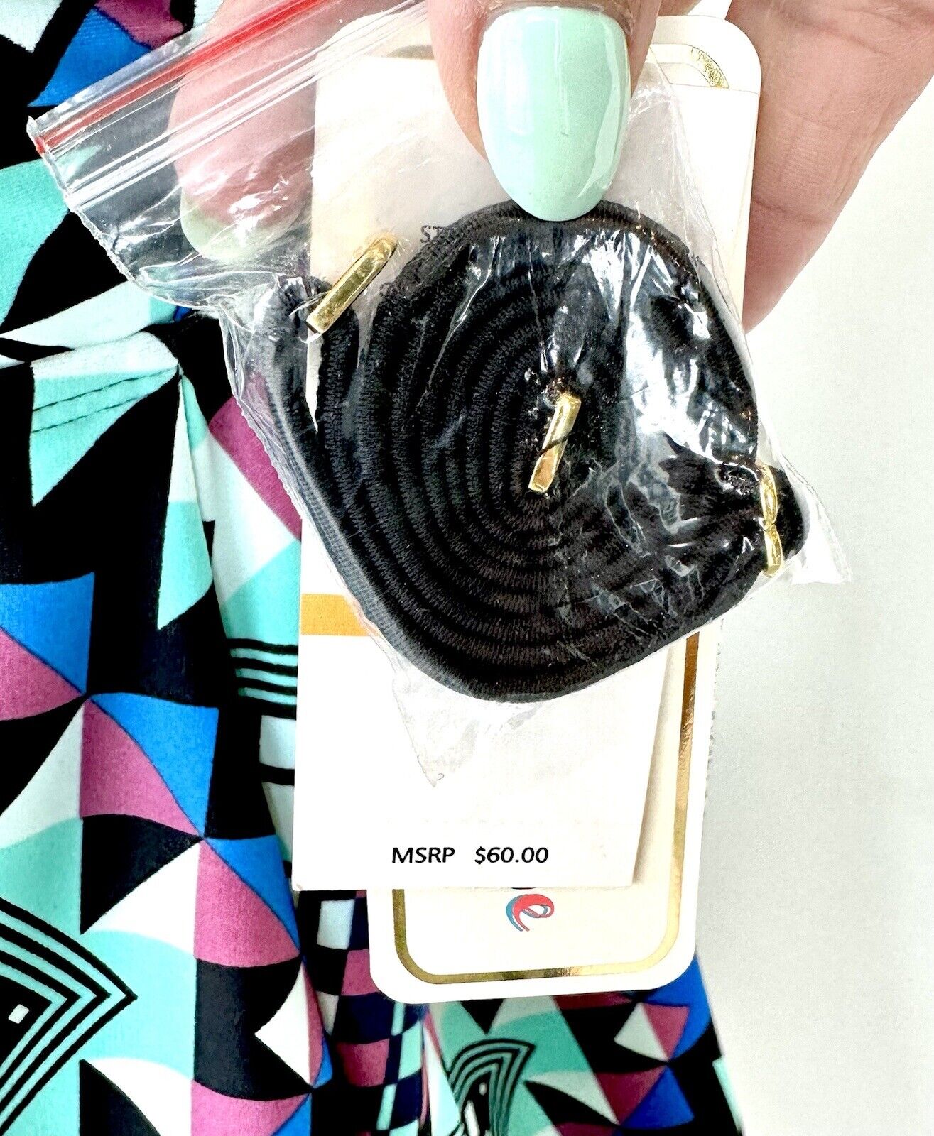 Elevate your beachwear style with this Pink Envelope Tankini top in a stunning geometric print of green, blue, and black.