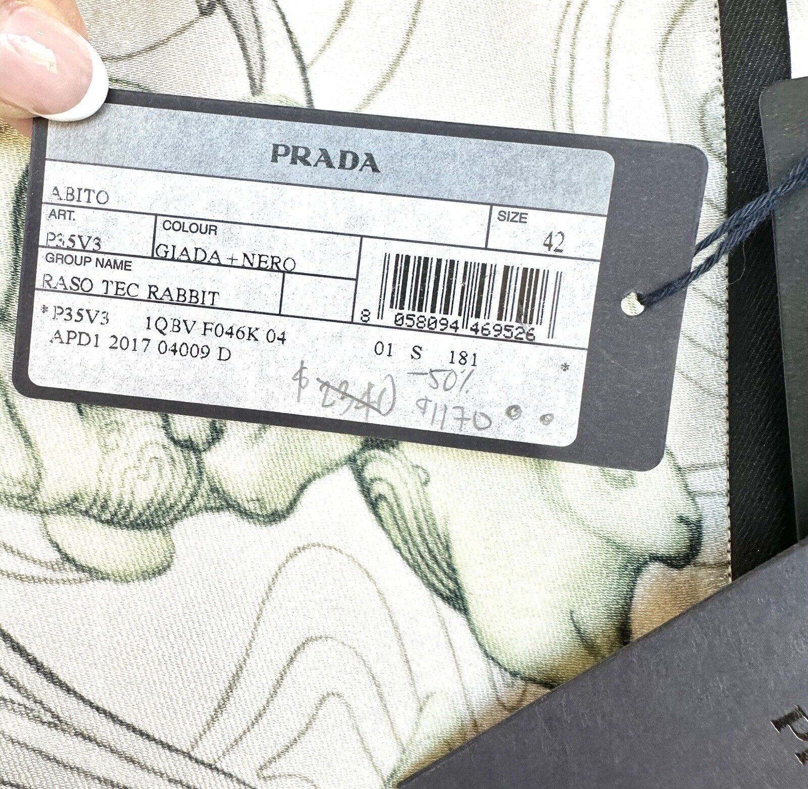 It hard to see unless you know it’s there, but it’s a chance to own a genuine Prada dress at a fraction of the retail price… with tags on if you are prepared for a few defects.