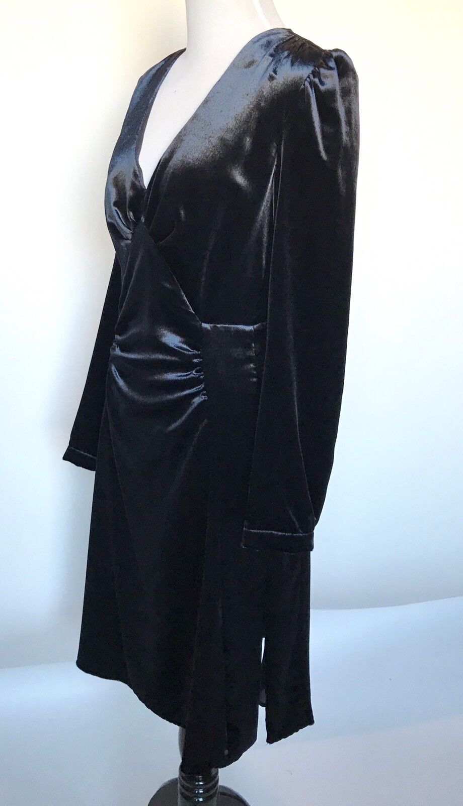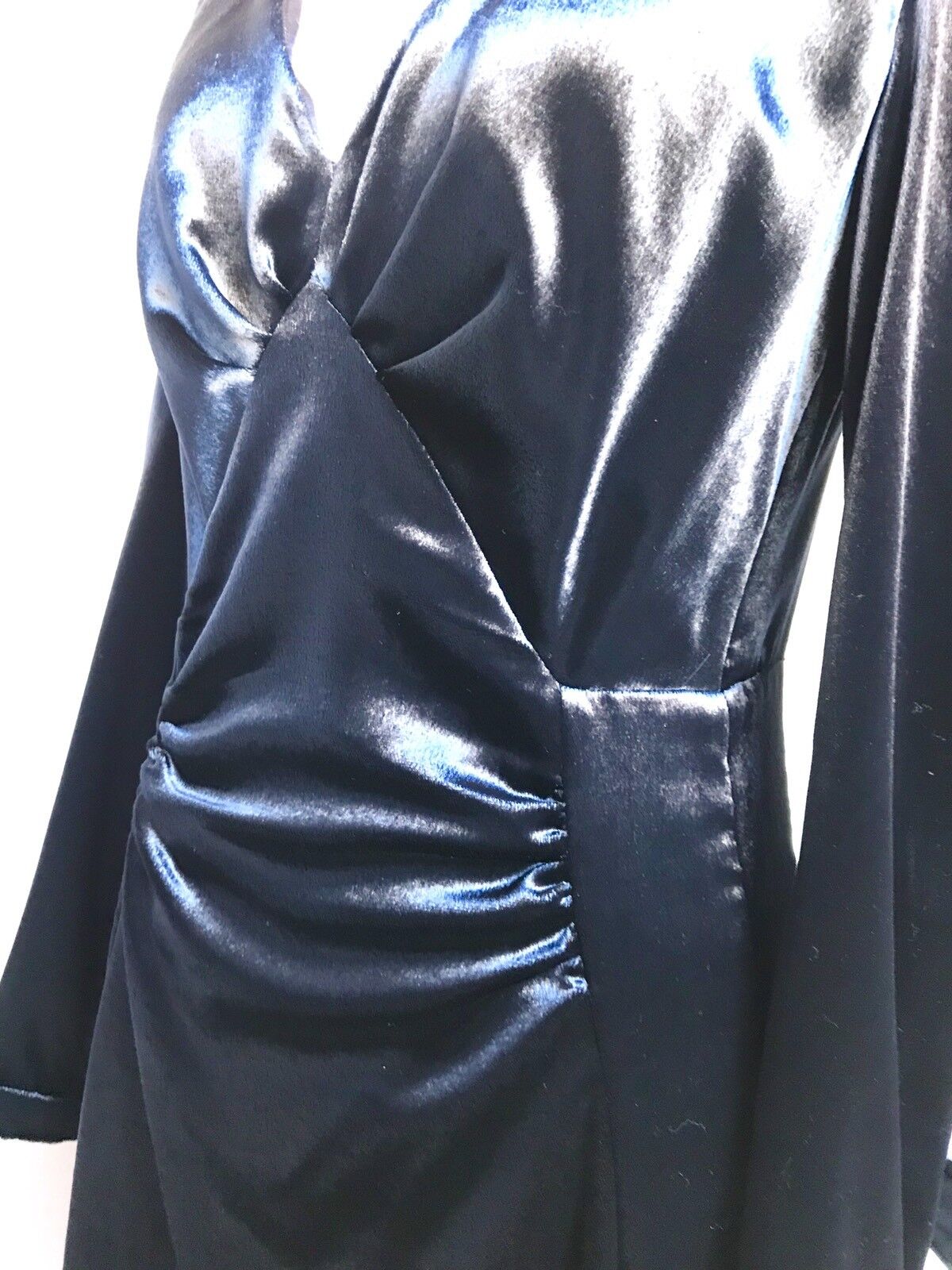 Prada Italian fashion house Blue long sleeve draped dress.