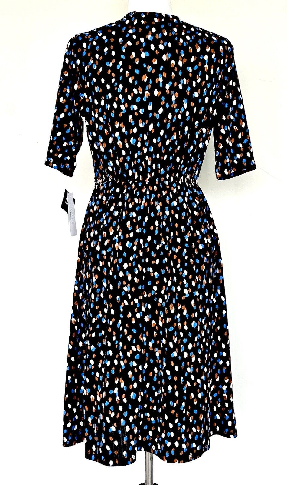 SIGNATURE BY ROBBIE BEE Black Spot Faux Wrap Dress Retail $79 Stretch Size SP