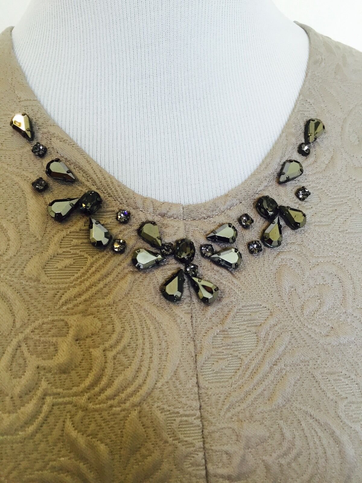 TAVI Taupe Beige dress with diamante detail. Stitched Detail NWOT Size S $39