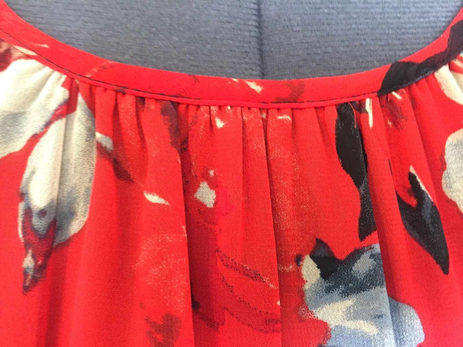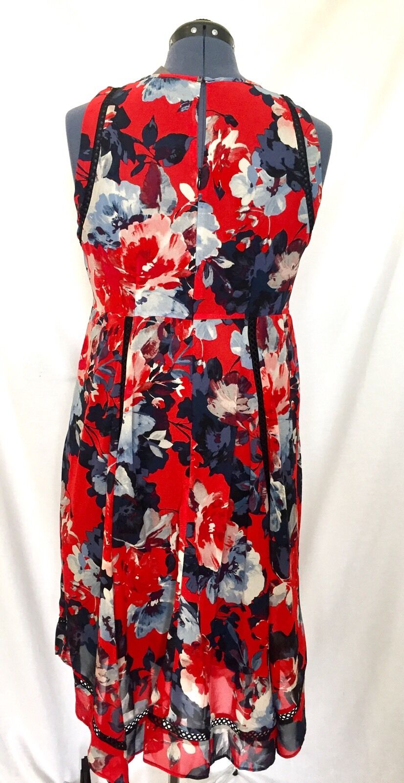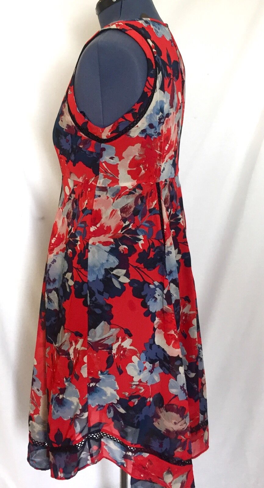 Taylor red blue and black floral dress. Floaty material that hangs beautifully.