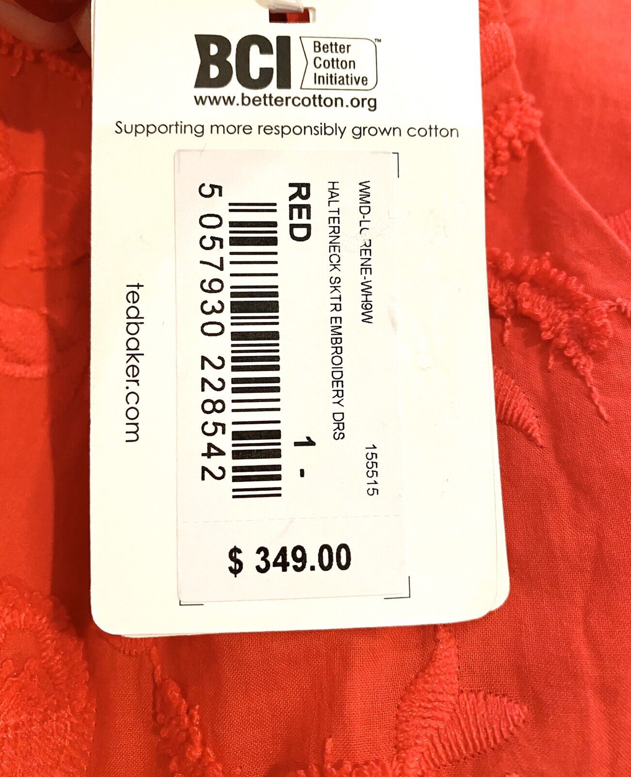 This dress is 100% cotton and is part of Ted Bakers commitment to supporting more responsibly grown cotton.