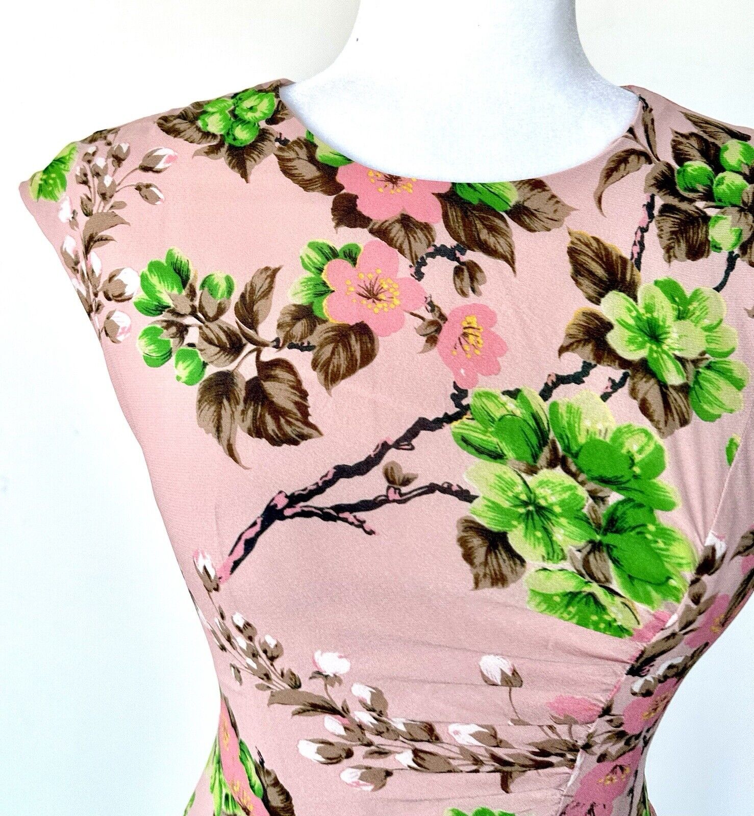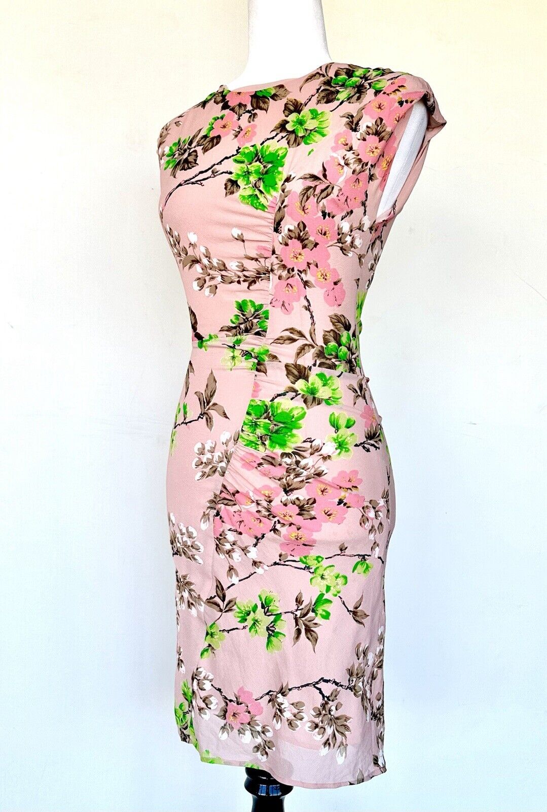 Whistles Floral Chiffon Pink Dress Size 0 Ruched Pleated Hip Design